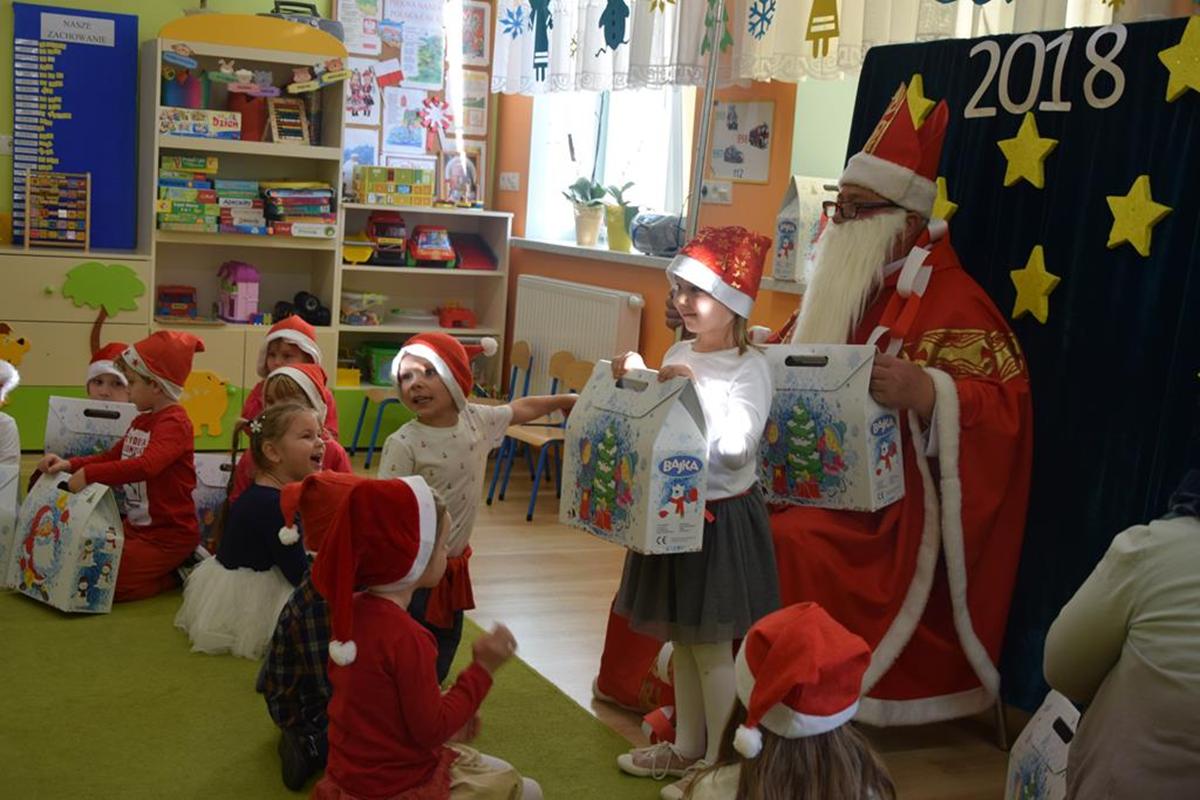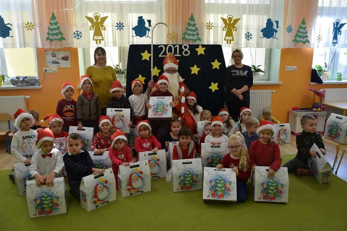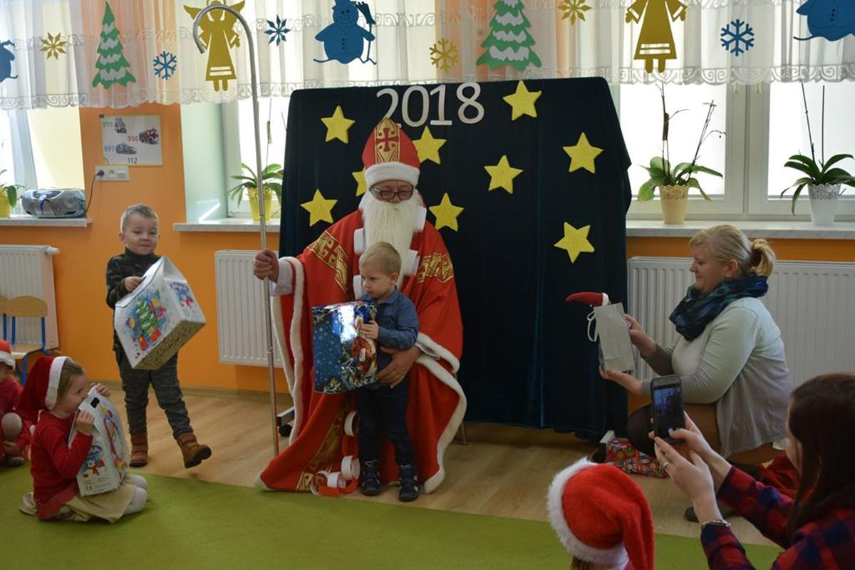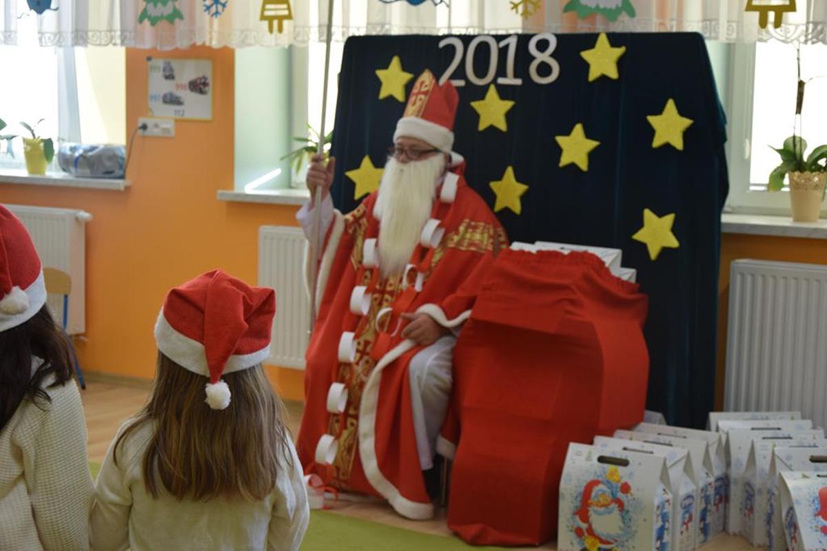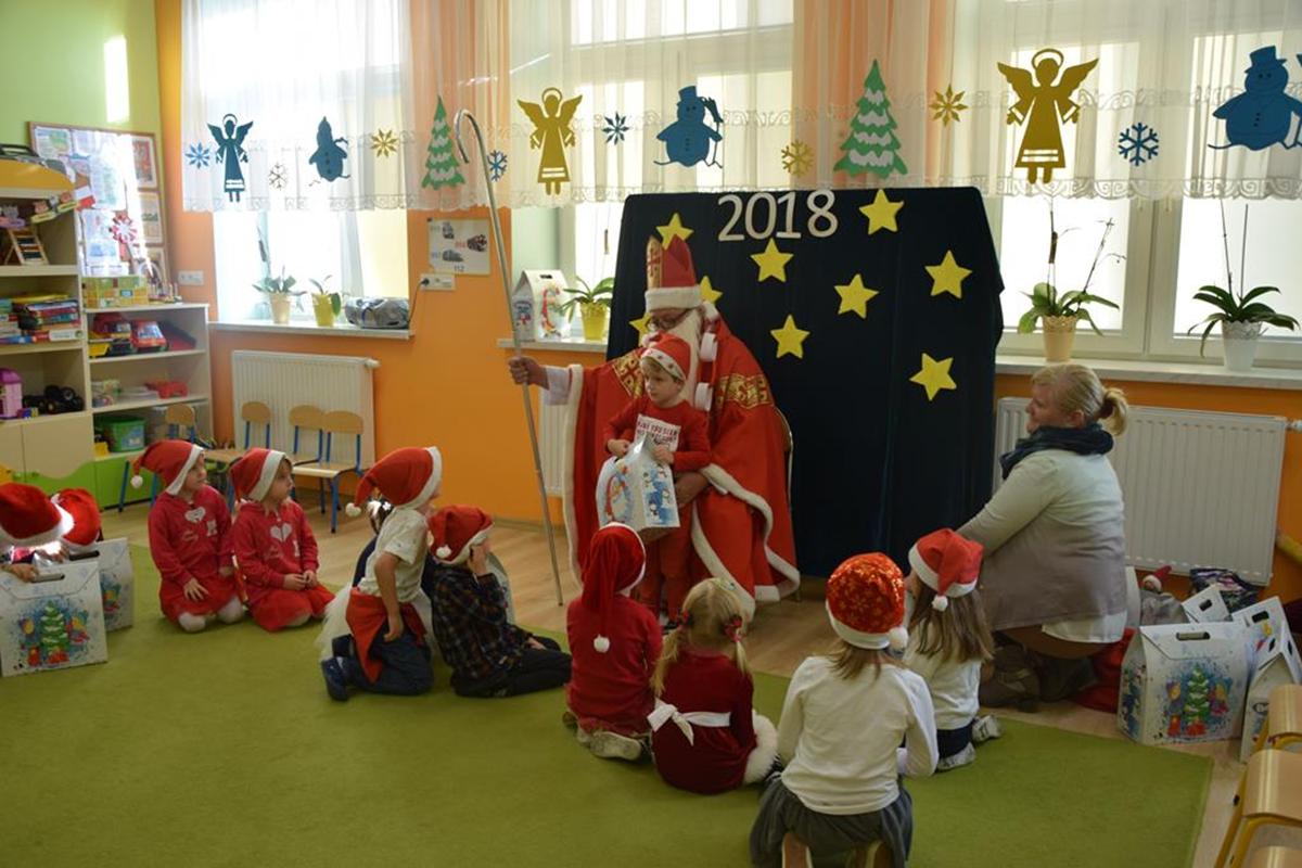 6 grudnia oddziały przedszkolne w szkole odwiedził Święty Mikołaj. Długo oczekiwany gość wywołał uśmiech na twarzach przedszkolaków. Św. Mikołaj został gorąco zaproszony przez dzieci do zabawy, tańca i śpiewu. Miło spędzony czas uświetniły wspólne zdjęcia oraz piękne prezenty. Dzieci z ogromną radością zaprosiły Św. Mikołaja za rok, obiecując, że czekając na niego będą bardzo grzeczne !