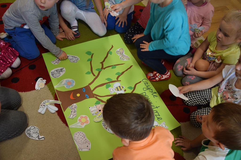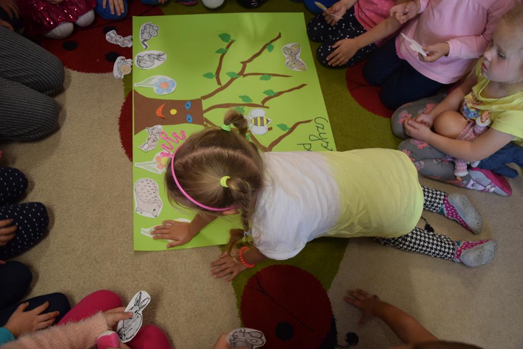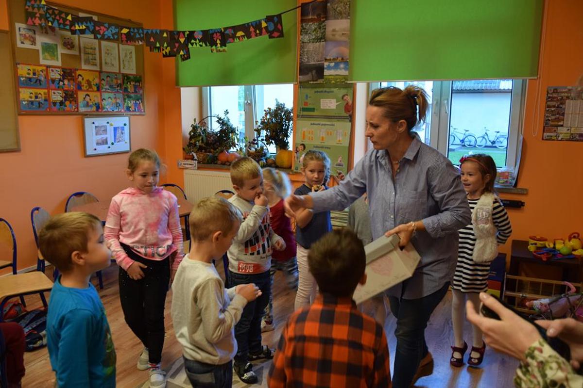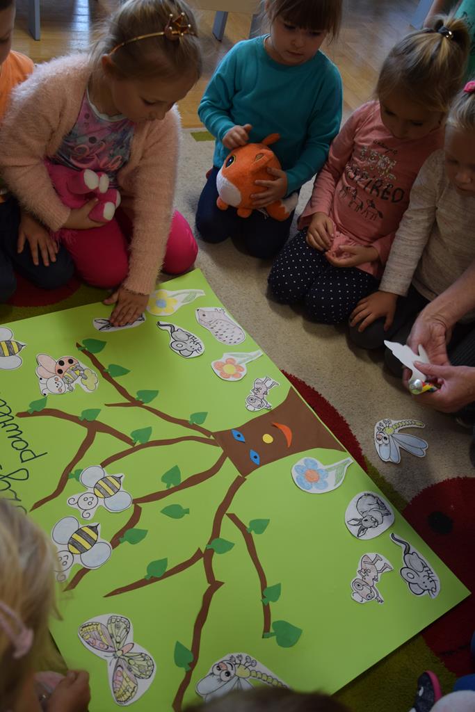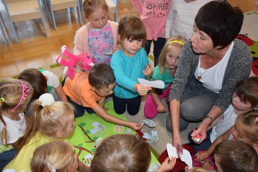 W ramach realizacji tematyki pro-zawodowej w naszym przedszkolu miało miejsce spotkanie z POLICJANTEM. Celem wizyty było zapoznanie dzieci z zawodem policjanta, jego umundurowaniem i rekwizytami. Przedszkolaki czynnie uczestniczyły w spotkaniu, zadawały pytania, dzieliły się swoimi spostrzeżeniami i doświadczeniami. Pan policjant utrwalił z dziećmi również zasady ruchu drogowego oraz przypomniał o zasadach bezpieczeństwa w przedszkolu i w domu. Na pamiątkę dzieci otrzymały odblaskowe opaski, dzięki którym będą bardziej widoczne w czasie spacerów i wycieczek.