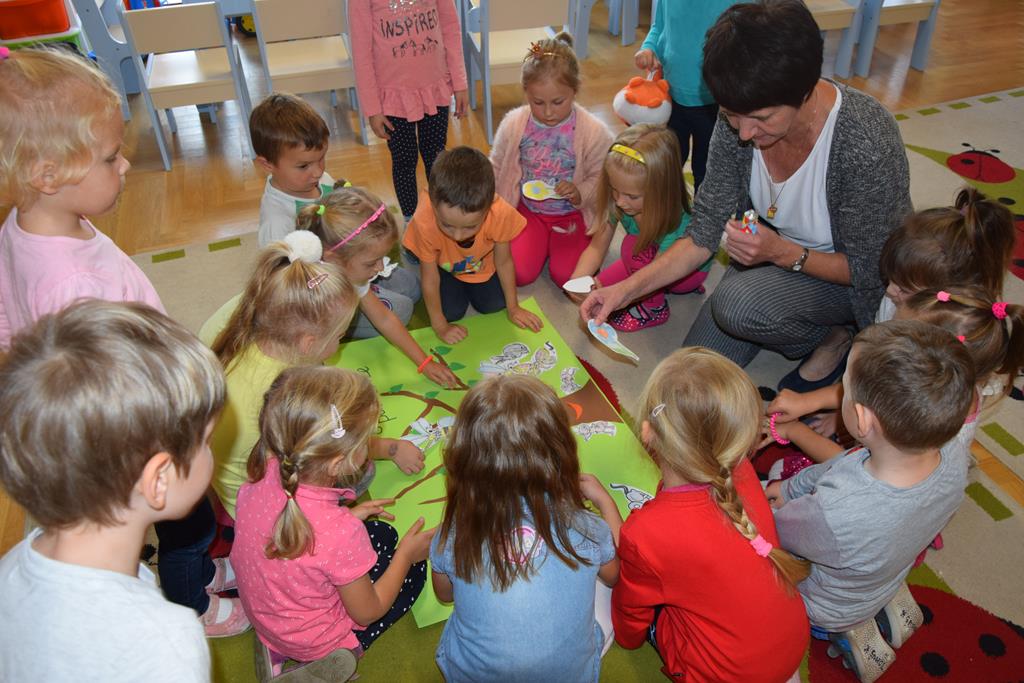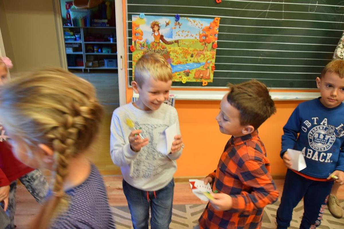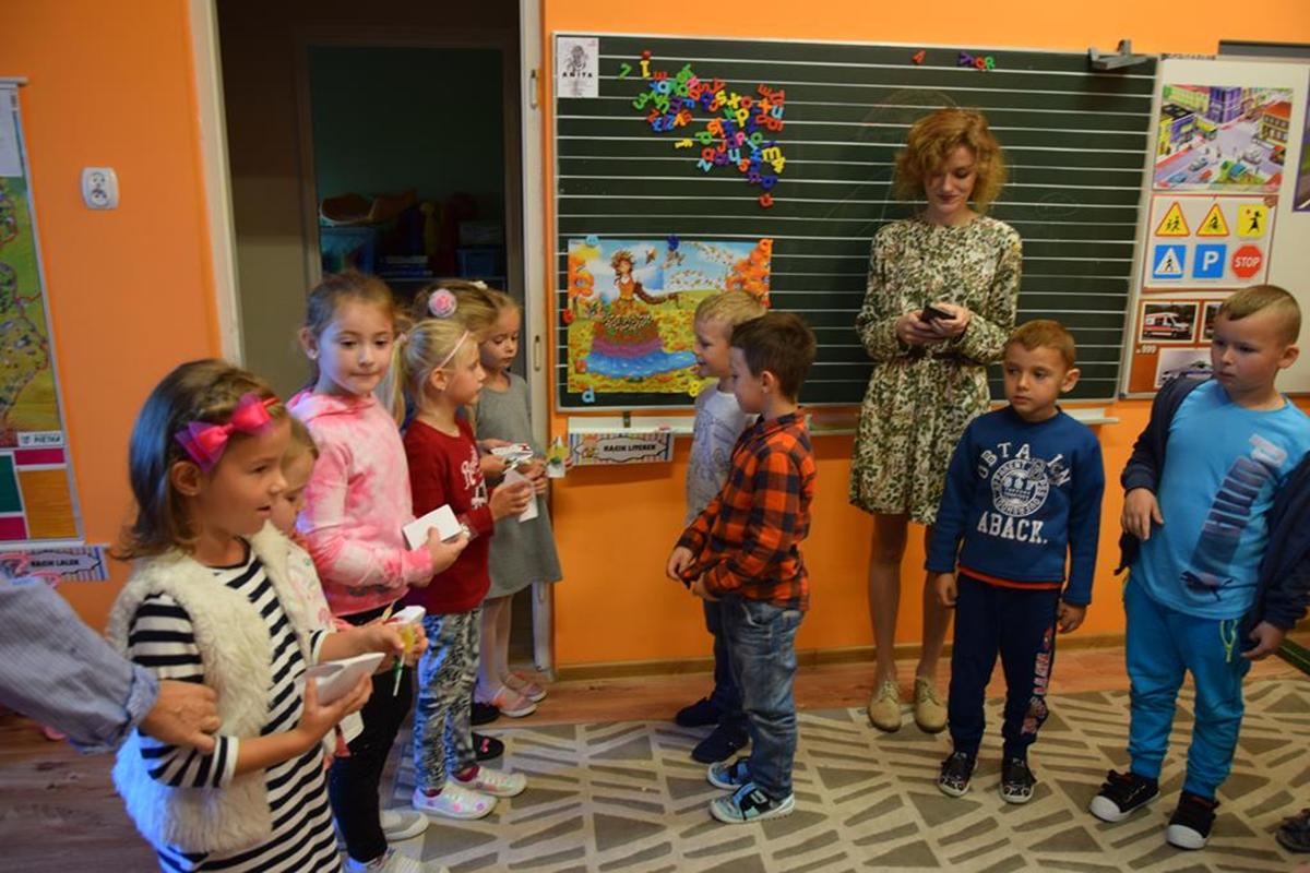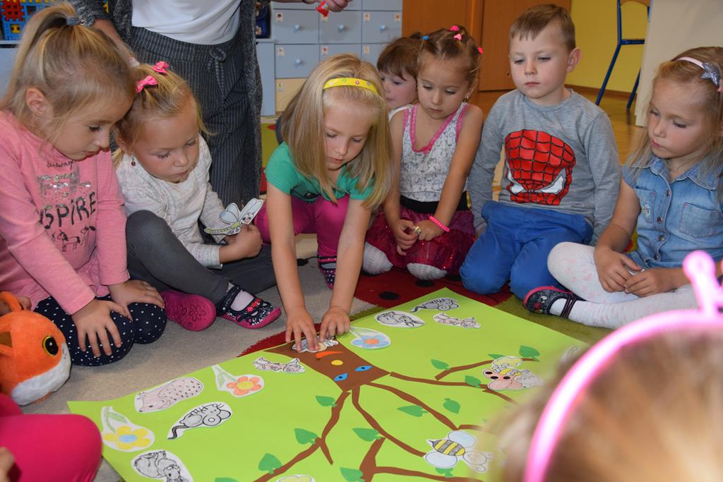 W ramach realizacji tematyki pro-zawodowej w naszym przedszkolu miało miejsce spotkanie z POLICJANTEM. Celem wizyty było zapoznanie dzieci z zawodem policjanta, jego umundurowaniem i rekwizytami. Przedszkolaki czynnie uczestniczyły w spotkaniu, zadawały pytania, dzieliły się swoimi spostrzeżeniami i doświadczeniami. Pan policjant utrwalił z dziećmi również zasady ruchu drogowego oraz przypomniał o zasadach bezpieczeństwa w przedszkolu i w domu. Na pamiątkę dzieci otrzymały odblaskowe opaski, dzięki którym będą bardziej widoczne w czasie spacerów i wycieczek.