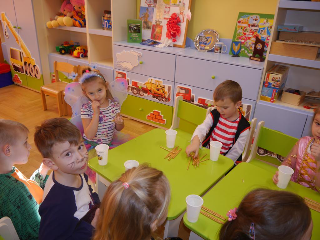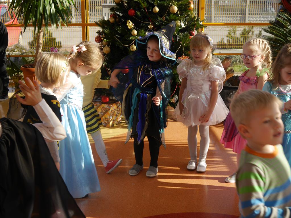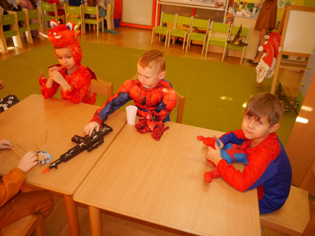 Przebierańcy świetnie bawili się, uczestnicząc z wielką ochotą w licznych konkurencjach, a skoczna muzyka zachęcała do tańca. Wspólna zabawa przysporzyła wiele radości naszym przedszkolakom, a to było głównym celem naszego balu. Niezliczone księżniczki, Elsy, towarzyszący im kowboje, policjanci, strażacy, marynarze, motylki, myszki, pszczółki, smoki, batmani, spidermani, a także inne postaci z kreskówek opanowały na kilka godzin nasze przedszkole.