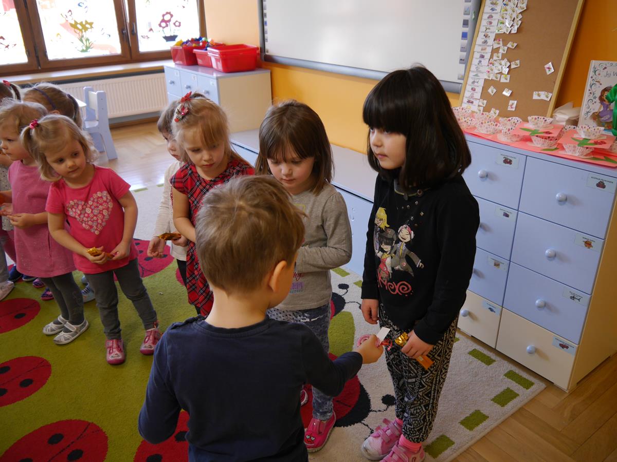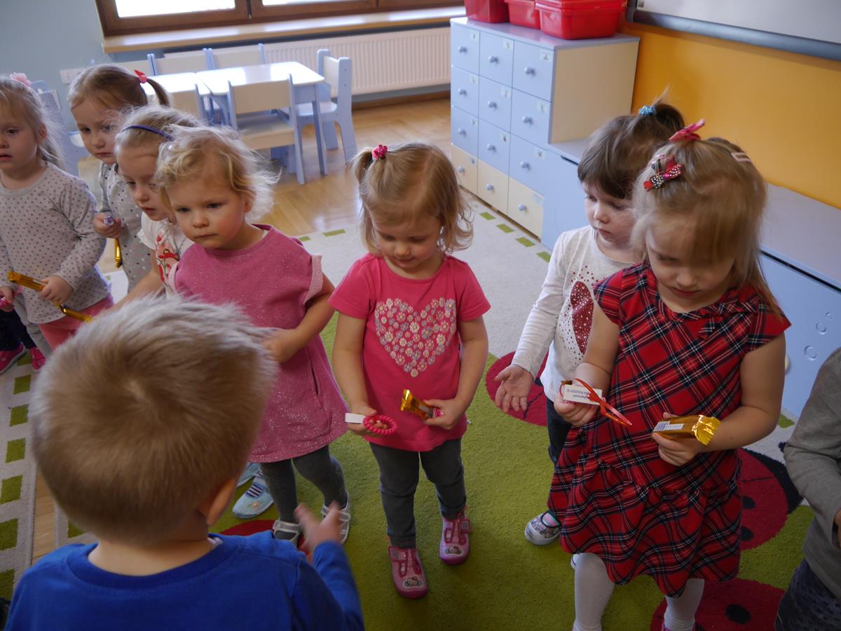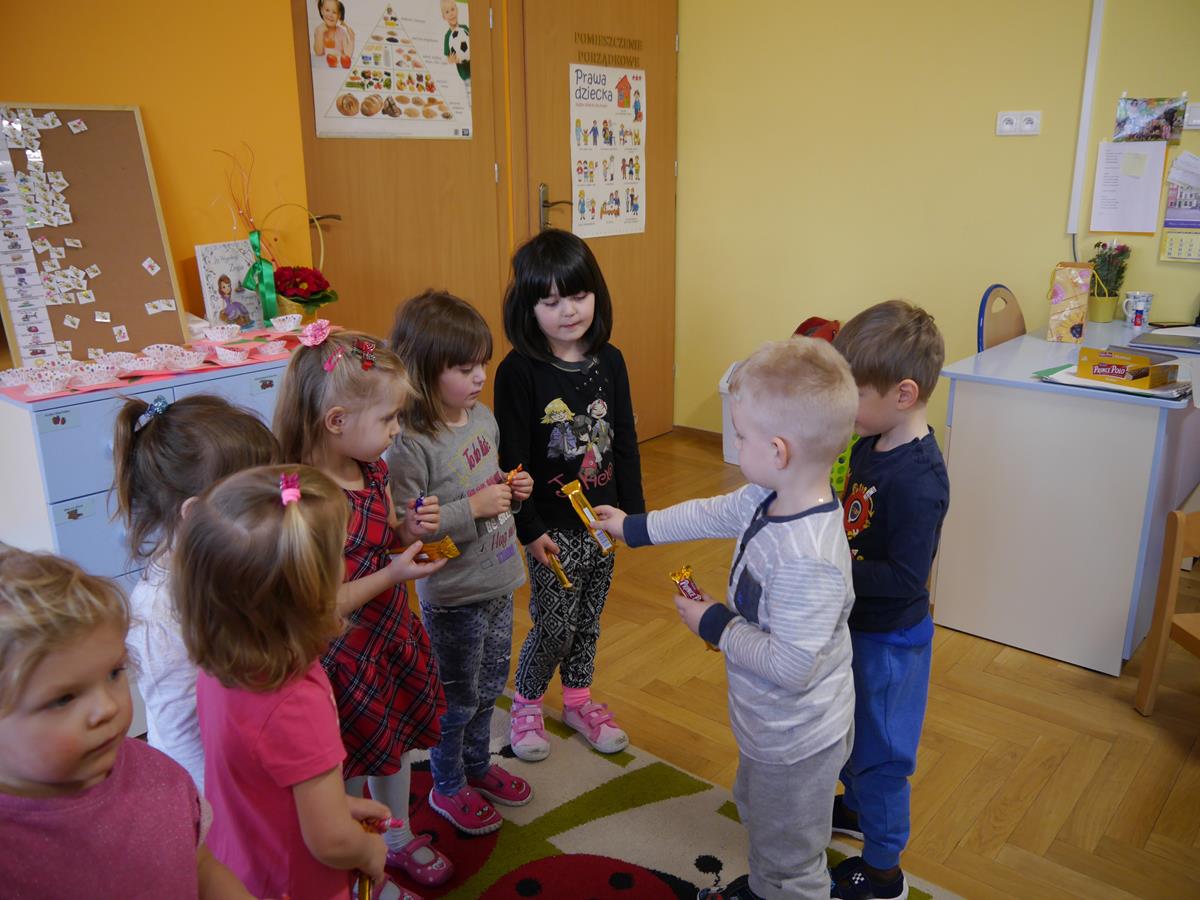 Zgodnie z tradycją 8 marca chłopcy nie zapomnieli o dziewczynkach i paniach z najbliższego otoczenia. Mali dżentelmeni w każdej grupie składali życzenia dziewczynkom, nie obyło się bez cukierków, drobnych upominków i kwiatów. Dzieci wykonały prace plastyczne zadedykowane paniom, w które włożyły wiele serca. Z dziewczęcych twarzy uśmiech nie schodził przez calutki dzień, a chłopcy byli bardzo mili, uczynni i sympatyczni:)